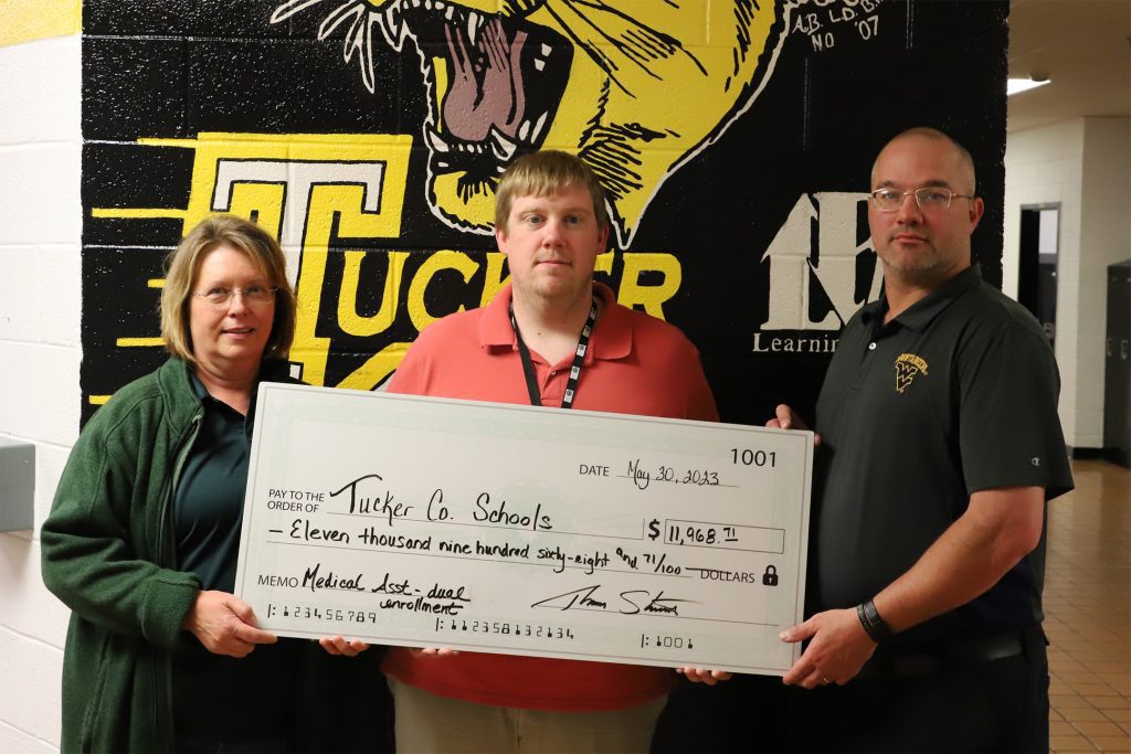 MOOREFIELD W.VA. – Melissa Shockey, Director of Workforce Education at Eastern West Virginia Community and Technical College (Eastern) presented second checks of $23,937.42 to Kristie Long, Health Occupations Teacher at Hampshire HS, and Alex Cork, Principal of Tucker County HS, for both school’s EKG and Phlebotomy dual enrollment programs. High school students have enrolled in their respective high school’s dual-enrollment program with Eastern to advance progress toward a career pathway in healthcare. The EKG and Phlebotomy dual-enrollment allows student completers to increase their likelihood of acceptance into Eastern’s Nursing Program. Eastern has partnered with and previously presented checks of $13,170 to South Branch Career and Technical Center, Hampshire High School, and Tucker County High School for their C.N.A. dual-enrollment initiative. These checks were presented to strengthen the partnership and further the growth of the dual enrollment program. “I am very excited Eastern was able to offer high school student completers affordable healthcare trainings while advancing their skillset and advancement into professional healthcare careers,” said Dr. Megan Webb, Dean of Advancement and Continuing Education, “I am very rewarded by seeing these students achieve success and furthermore, support high school healthcare programs strengthen their dual enrollment opportunities for their students at Eastern.”