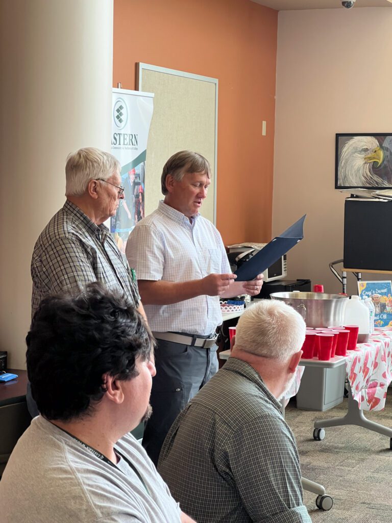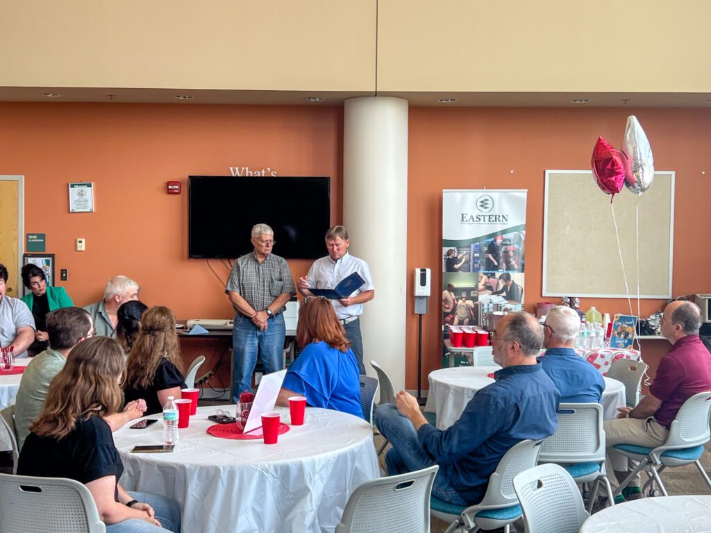 The celebration, which was a surprise for Greenwalt, took place in the student lounge where Eastern staff gathered to show their appreciation. The event followed his final Board of Governors meeting. As he exited the boardroom, Mr. Greenwalt was met with applause and well wishes from his colleagues. Dr. Tom Striplin, President of Eastern, presented Greenwalt with a Certificate of Appreciation, issued by Governor Jim Justice. He was also recognized for his service at the Spring 24 Commencement Ceremony, plus has been given an honorary associate degree from Eastern.