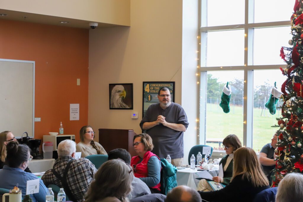 Moorefield, W.Va. — Eastern West Virginia Community & Technical College hosted its District Consortium on Monday, December 16, 2024, at the main campus, welcoming community leaders from businesses, health centers, high schools, local government, and more. The event began with introductions and a welcome from Dr. Tom Striplin, Eastern’s president, and Monica Wilson, vice president of academics and student services. Wilson highlighted Eastern’s offerings, including Better Futures, a collaboration with Pilgrim’s Pride that provides reduced-rate education for Pilgrim’s employees and their dependents. She noted Eastern’s 14-degree programs, 12 certificates, and over 30 transfer opportunities, encouraging attendees to join advisory committees to strengthen programs.