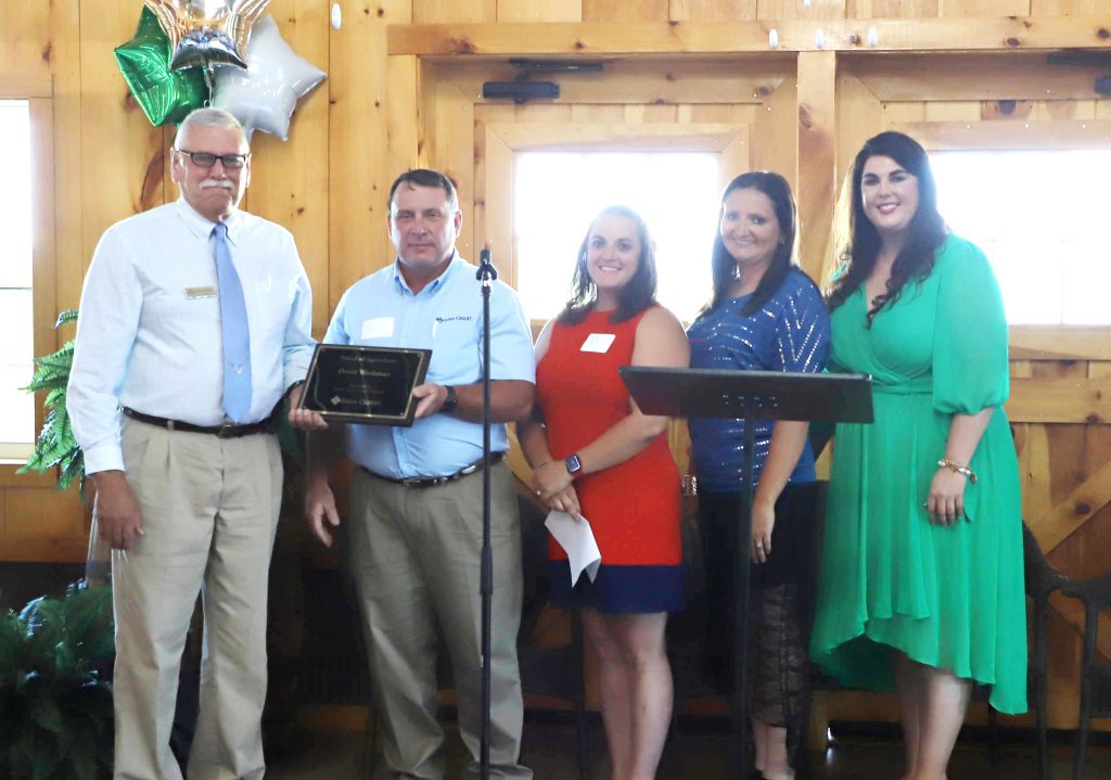David Workman (center) stands with Greg Mitchell and Trey Keyser of Farm Credit of the Virginias after Workman received the Friend of Agriculture award.