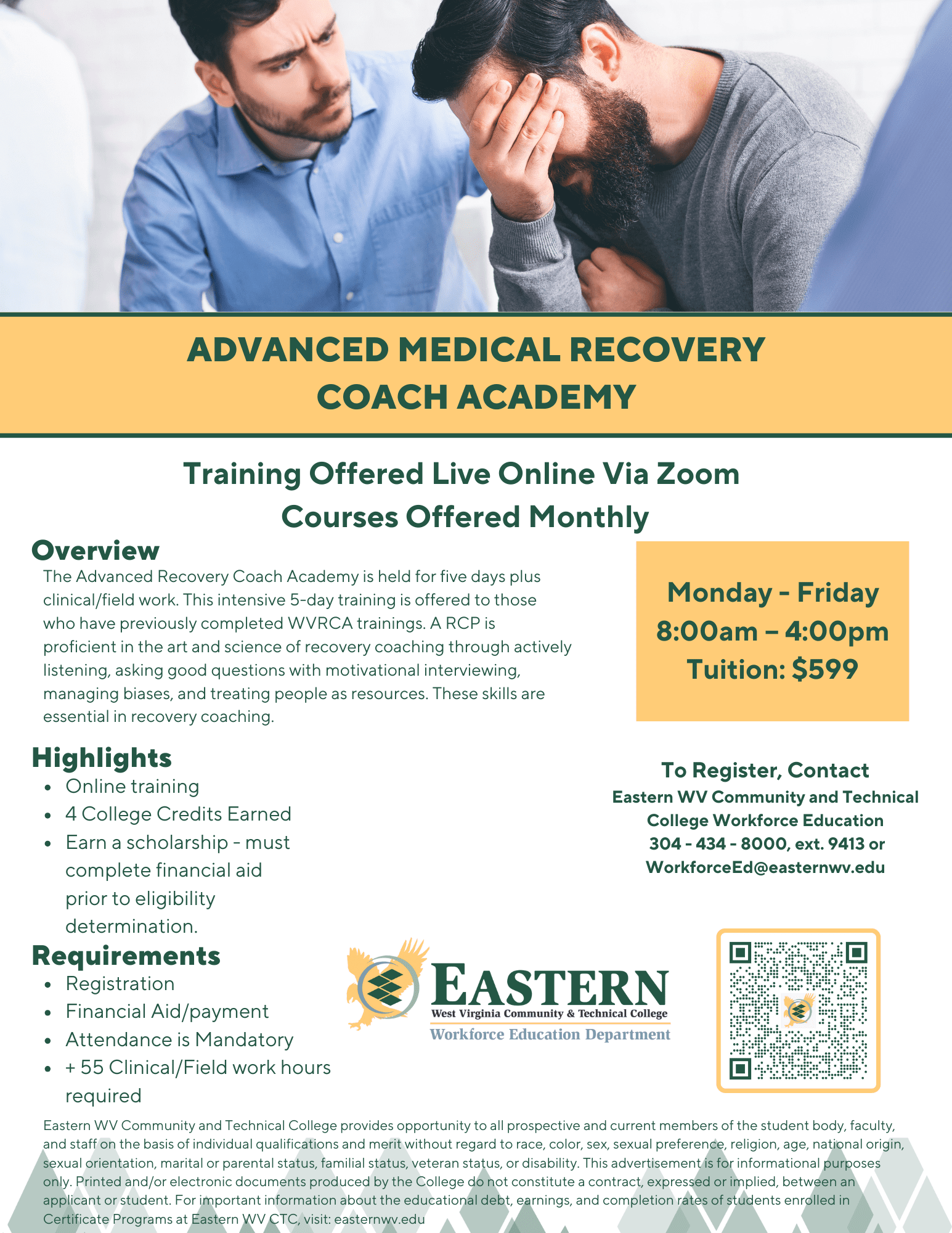 Virtual Recovery/Life Coach Serve as a mentor and help others navigate their lives in recovery. Courses held over Zoom sessions. Request Information Apply Now Recovery/Life Coach Next Classes... 347E • February 2-5, 2026 352E • February 21 & 28, March 7 & 14, 2026 (Saturdays) 353E • March (TBD) Advanced Recovery Coach Next Classes... 354E • March 9-13, 2026 WHAT'S NEXT? Request Information Visit Apply You may also be interested in: Medical Assistant Nursing